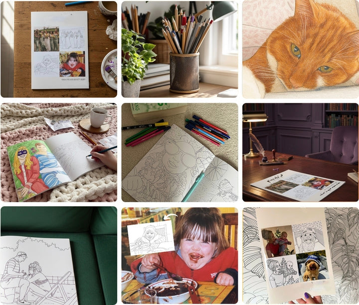 En sevdiğin fotoğraflar el çizimi çizgi sanatıyla hayata geçirilir ve senin için hazırlanan kişiye özel boyama kitabında sonsuza dek saklanır